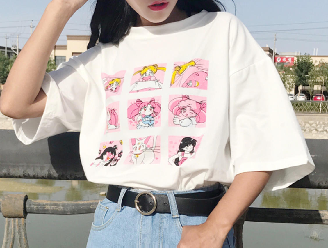 SAILOR MOON 9 ANIME PICTURES TEE ( WHITE )