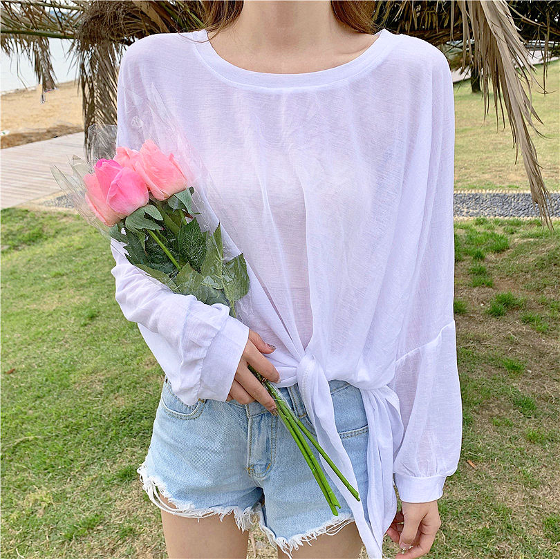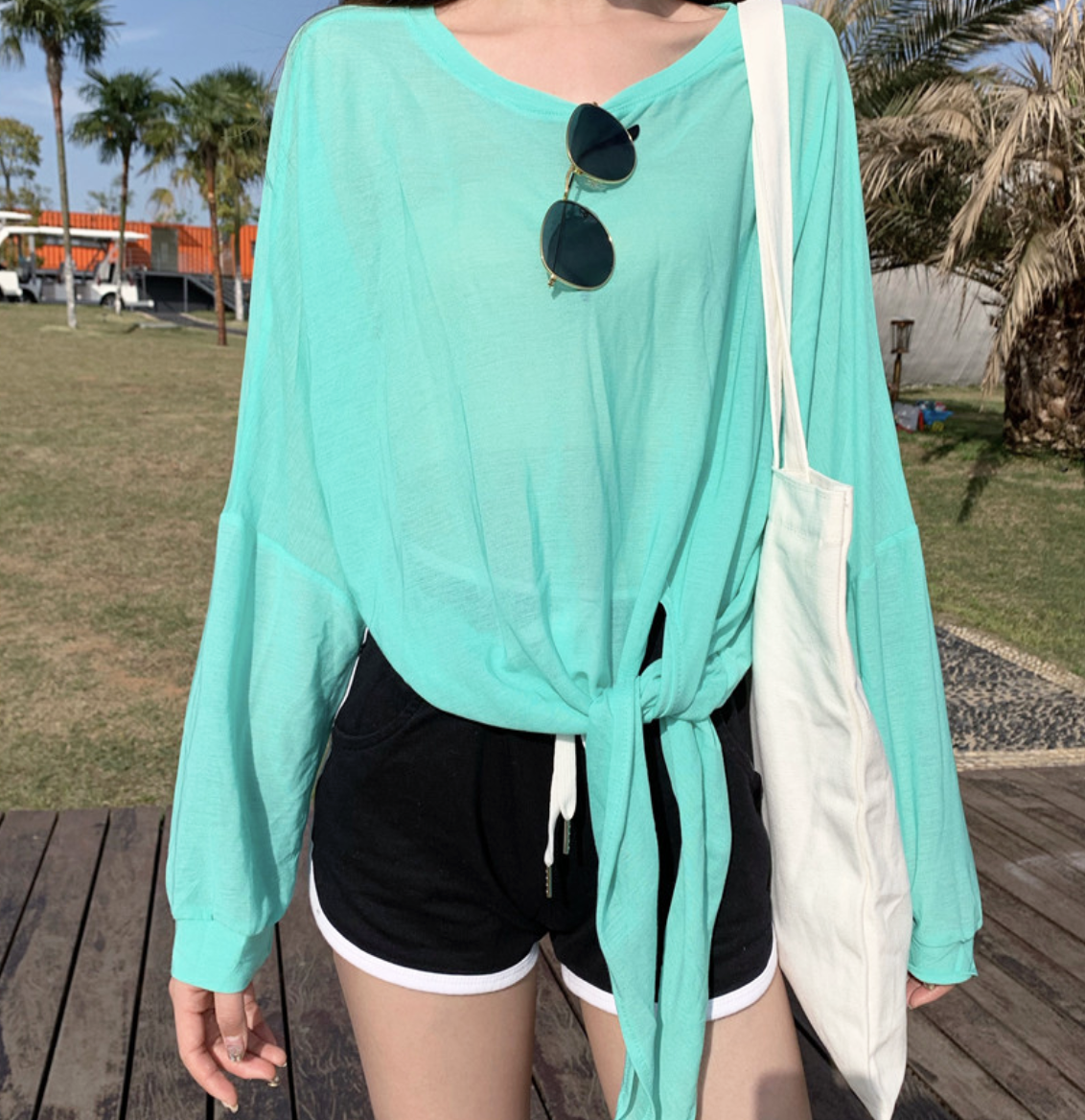 SUMMER BATWING LONG SLEEVE TEE WITH TIE DETAIL