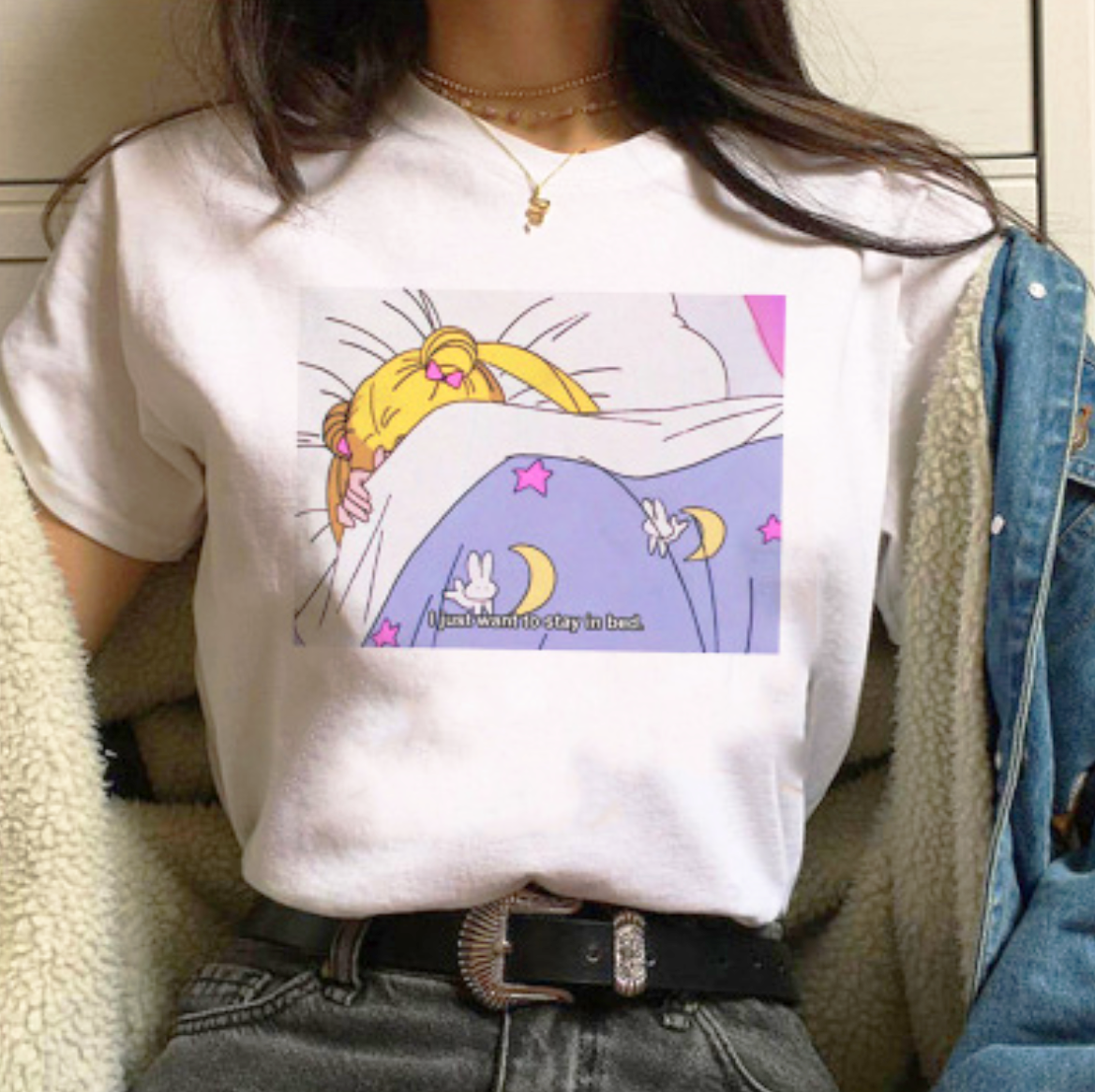 *FreeShipping*SAILOR MOON I JUST WANT TO STAY IN BED TEE