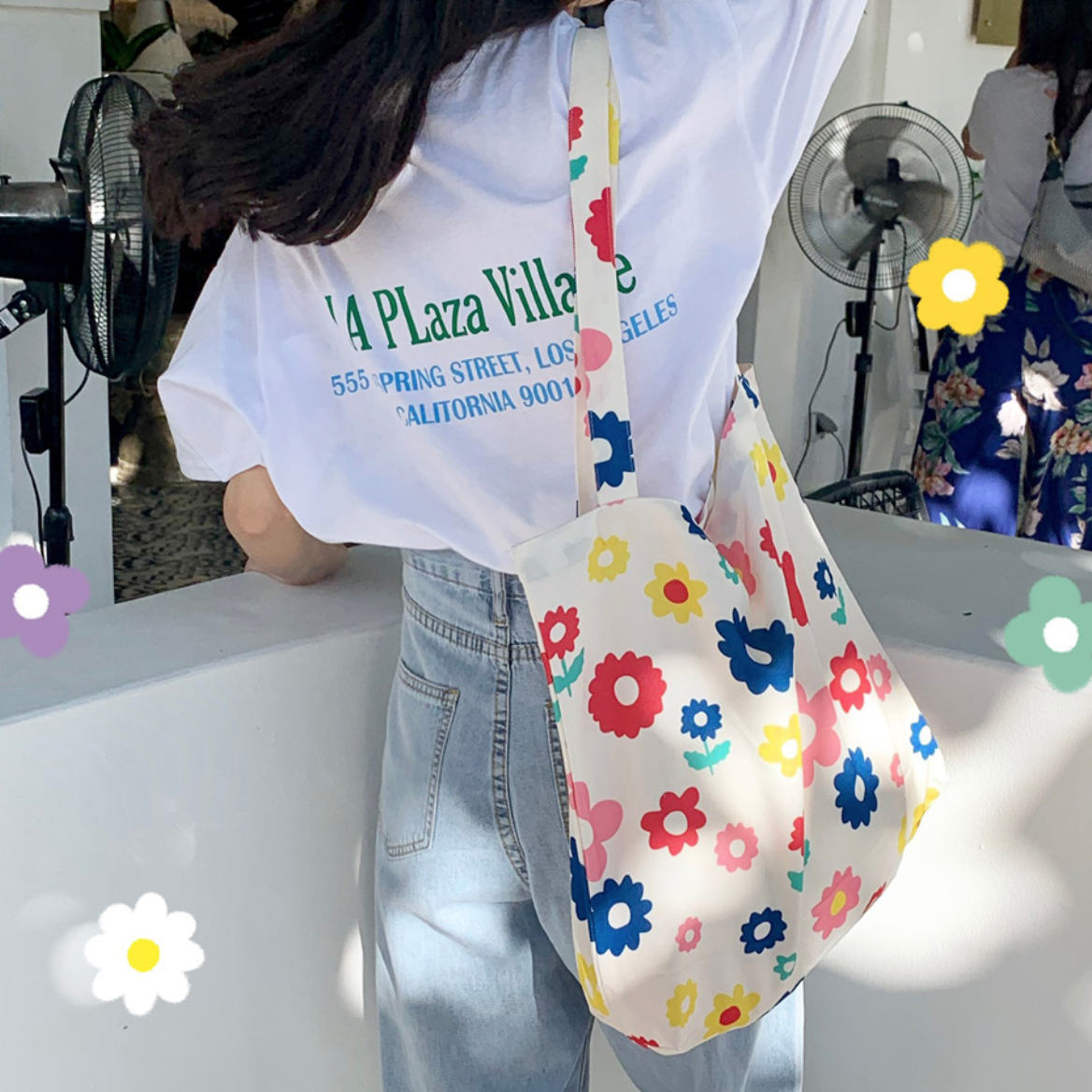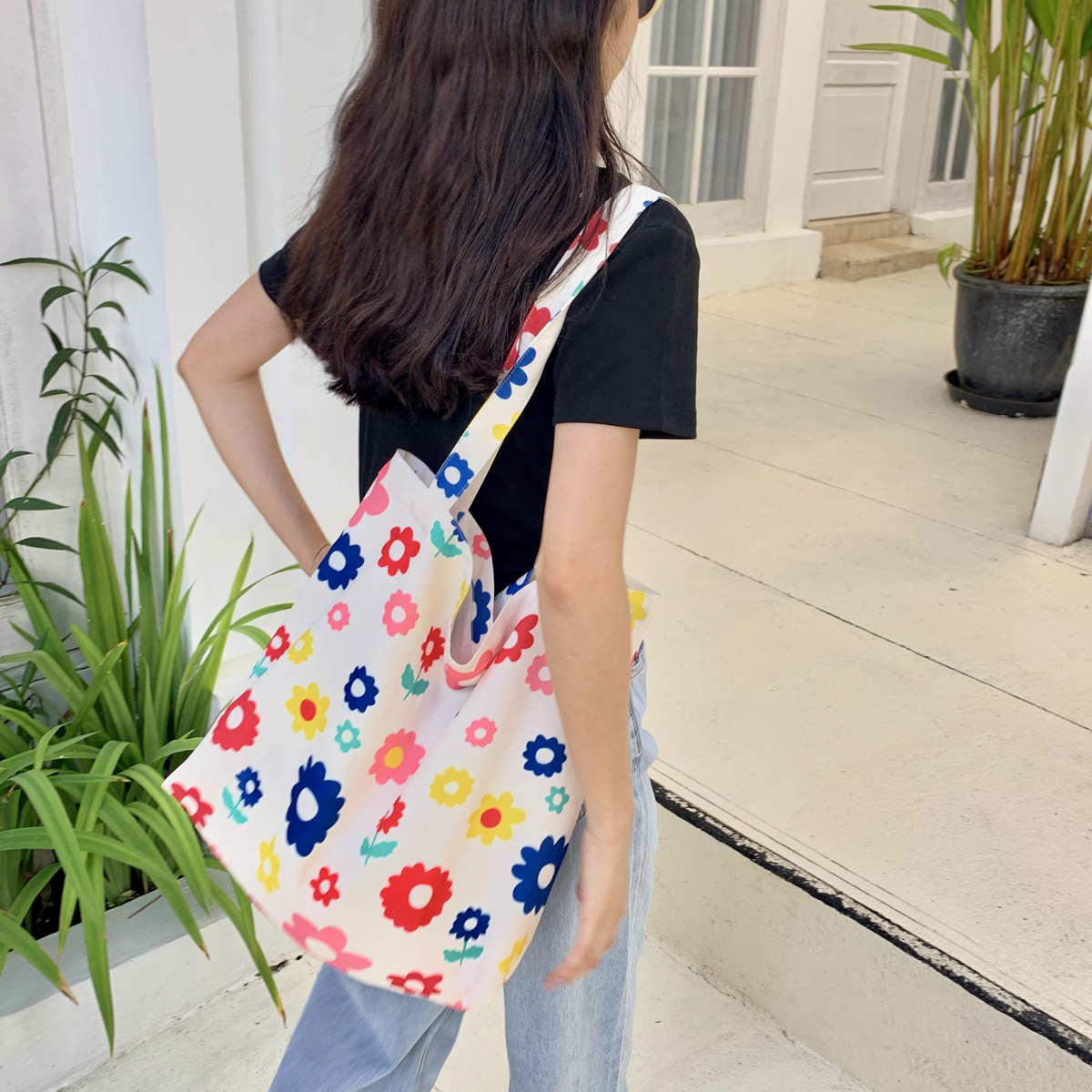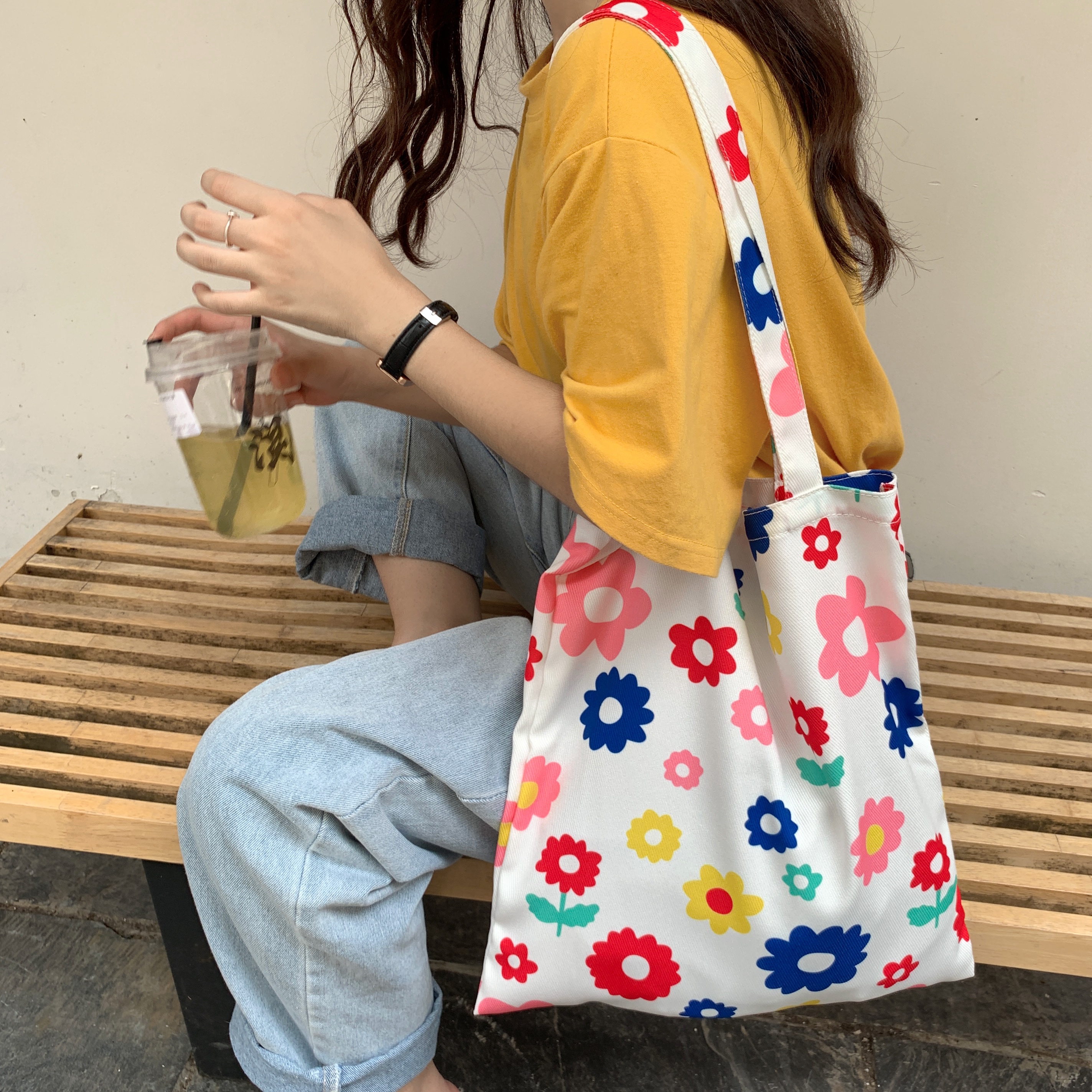 *Free Shipping*COLOURED FLOWERS TOTE BAG