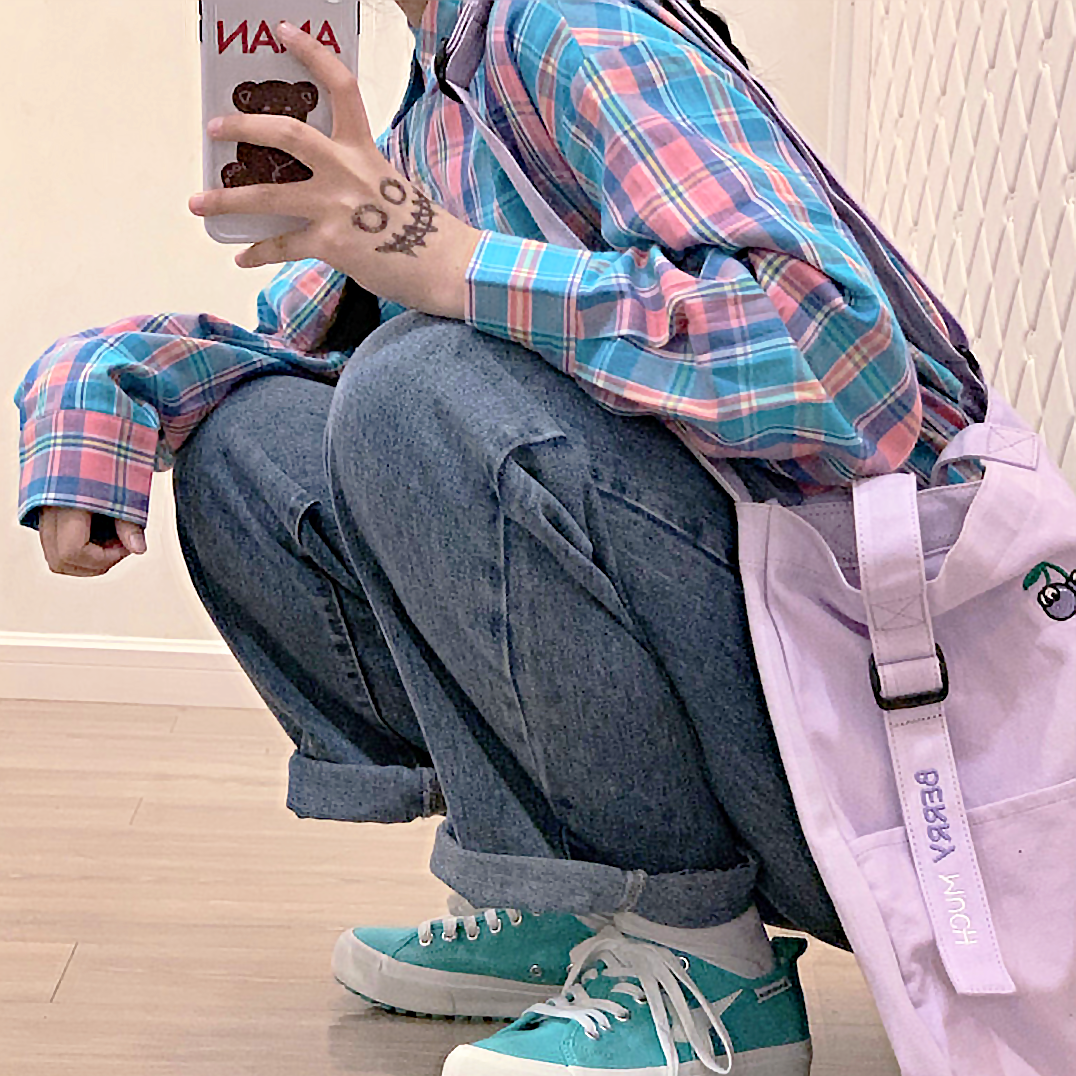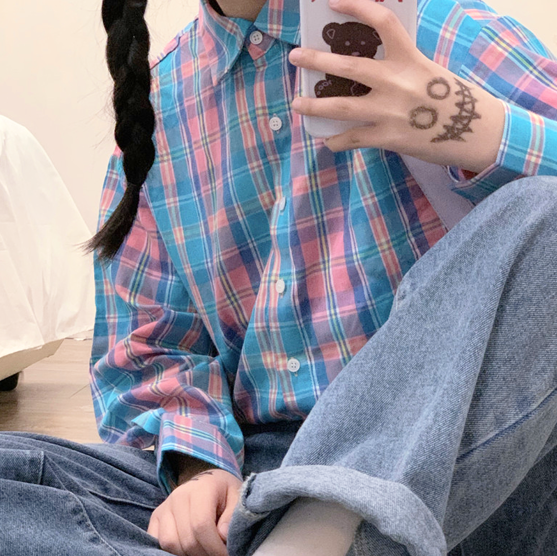 *Free Shipping*90S BLUE AND PINK PLAID SHIRT