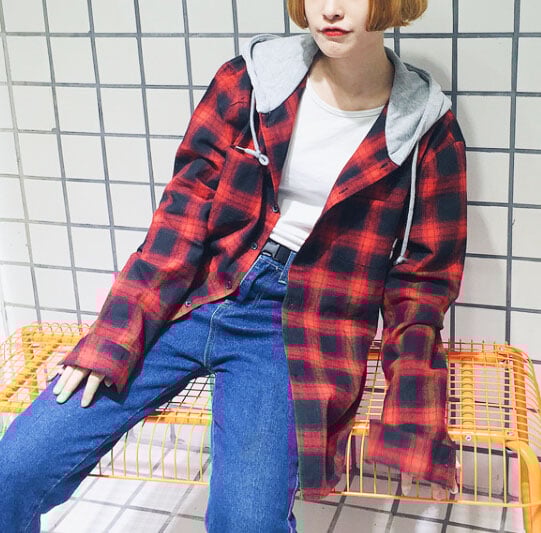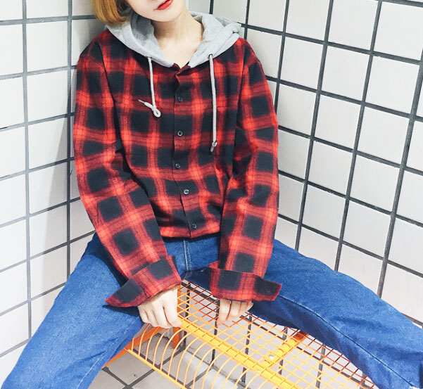 CHECKER LONG SLEEVE SHIRT ( RED / BLACK )