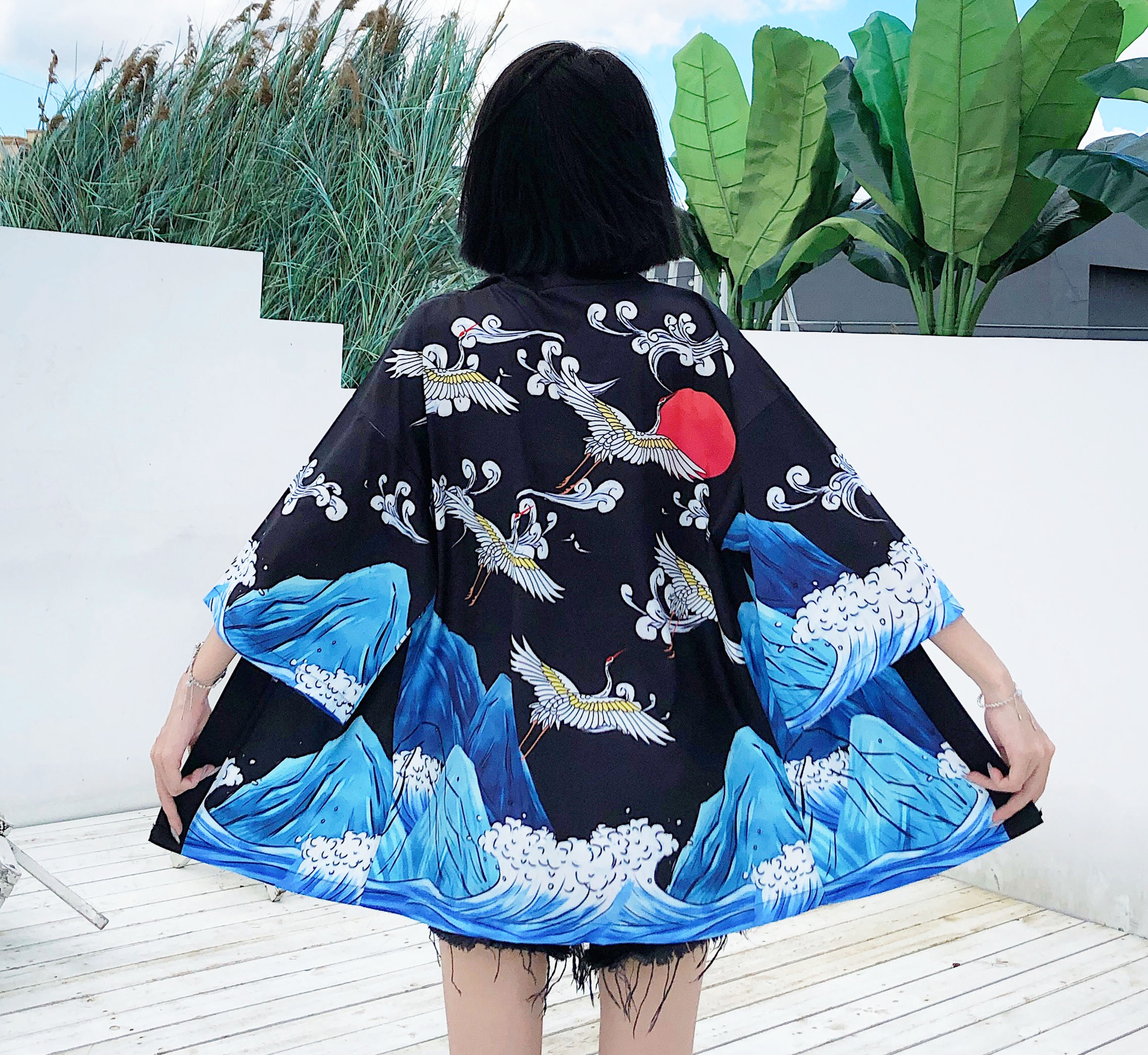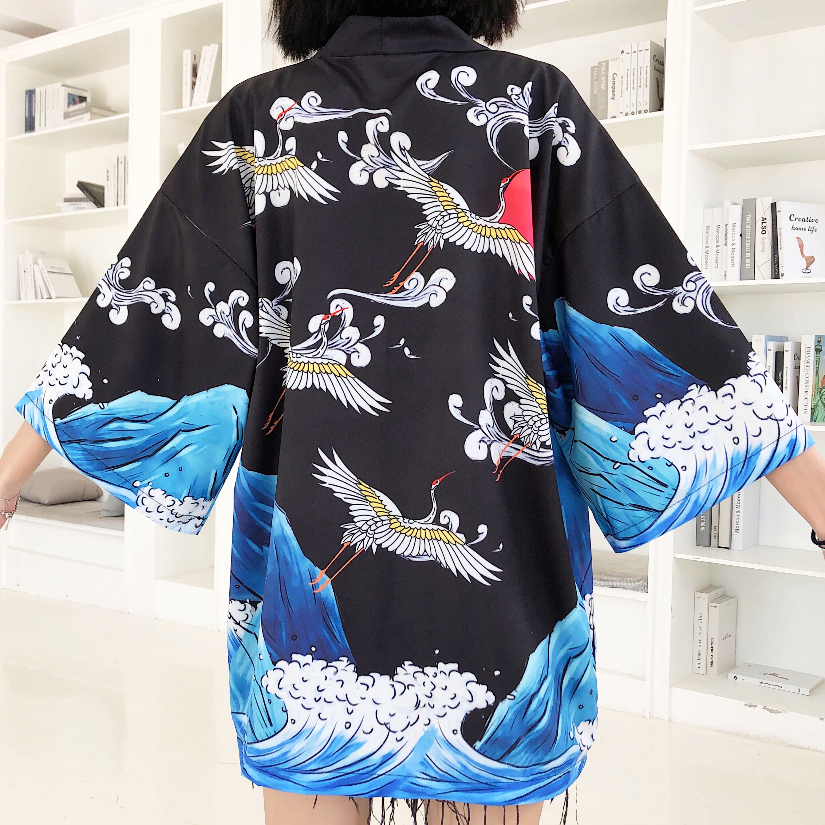 *Free Shipping*CRANE AND WAVE KIMONO