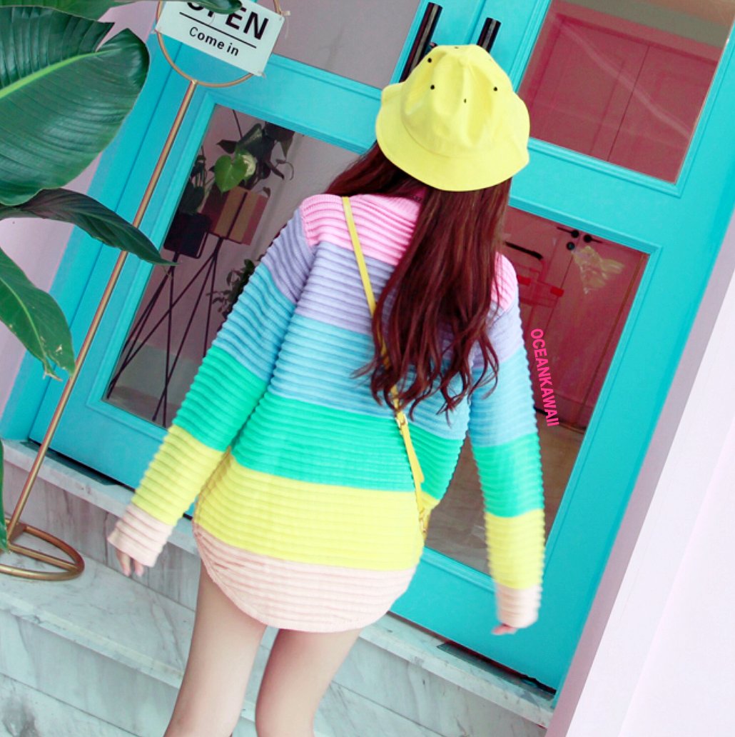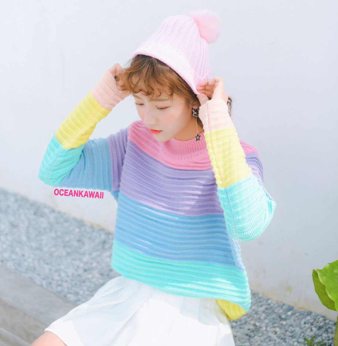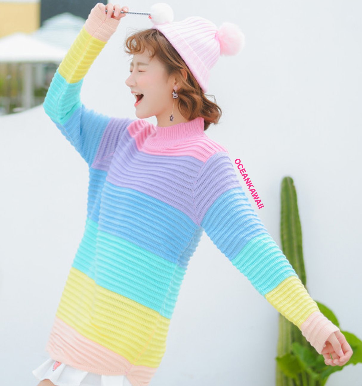 PASTEL RAINBOW KNIT HIGH NECK JUMPER
