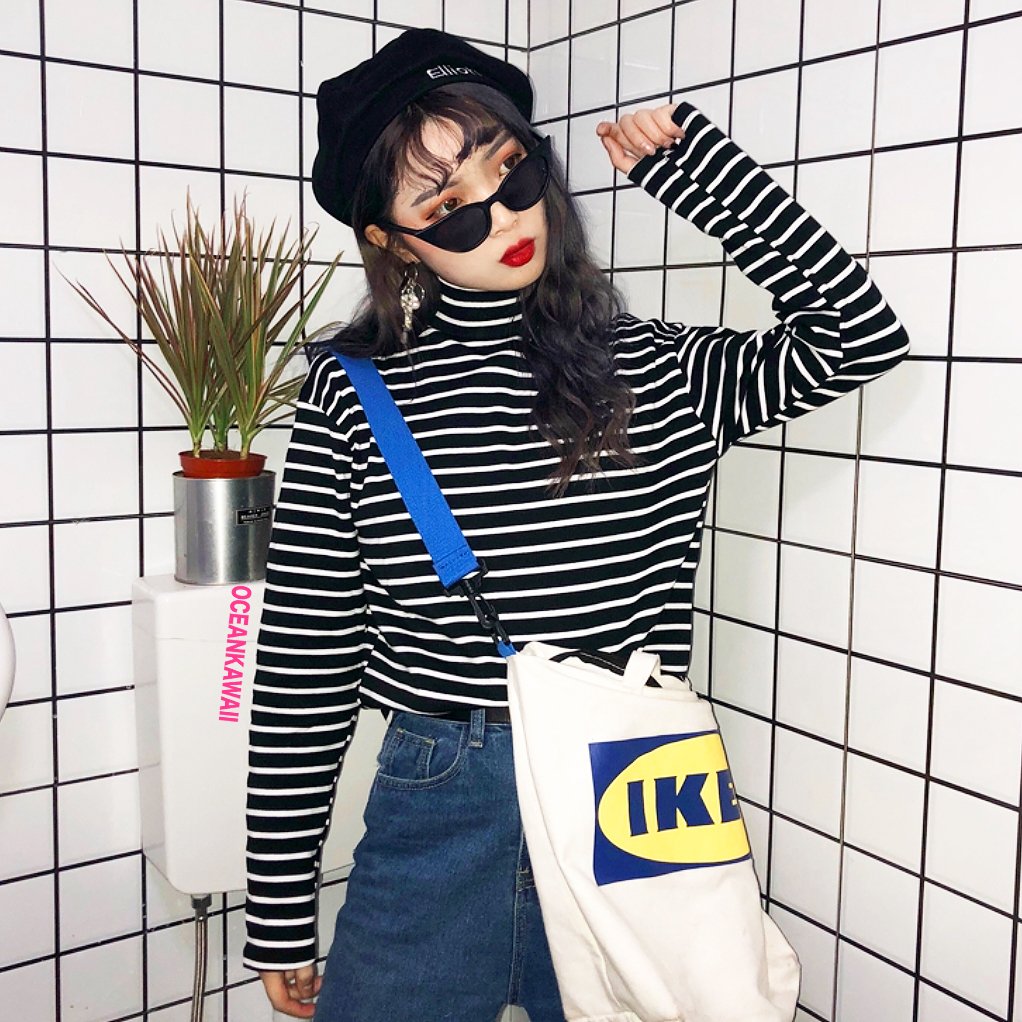 VINTAGE TURTLENECK STRIPE TOP