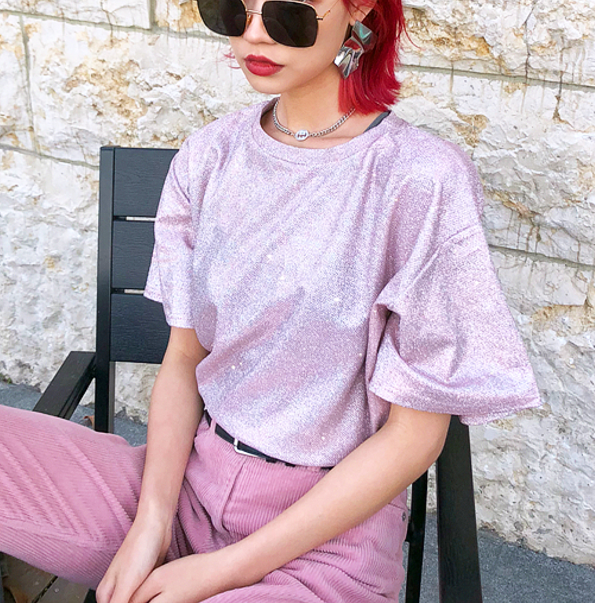 FREE SHIPPING WORLDWIDE COLOR: PINK / SILVER ONE SIZE: LENGTH 73 CM / 28.7 in CHEST 118 CM / 46.5 in SLEEVE 21 CM / 8.3 in