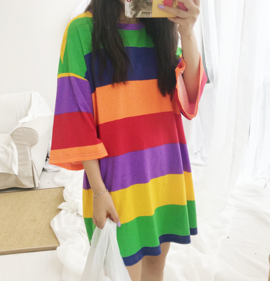 OVERSIZED RAINBOW COLOR BLOCK TEE