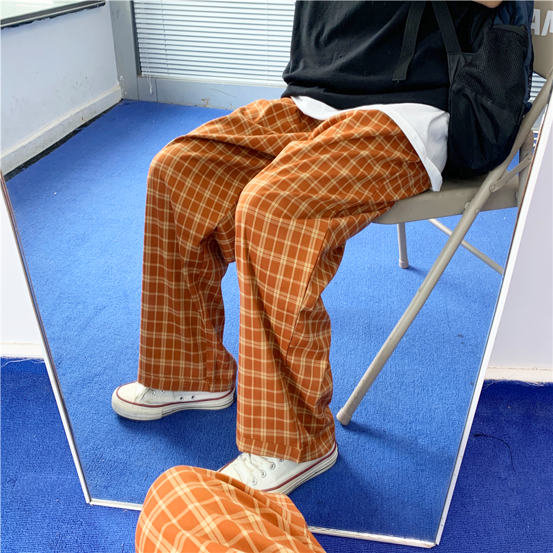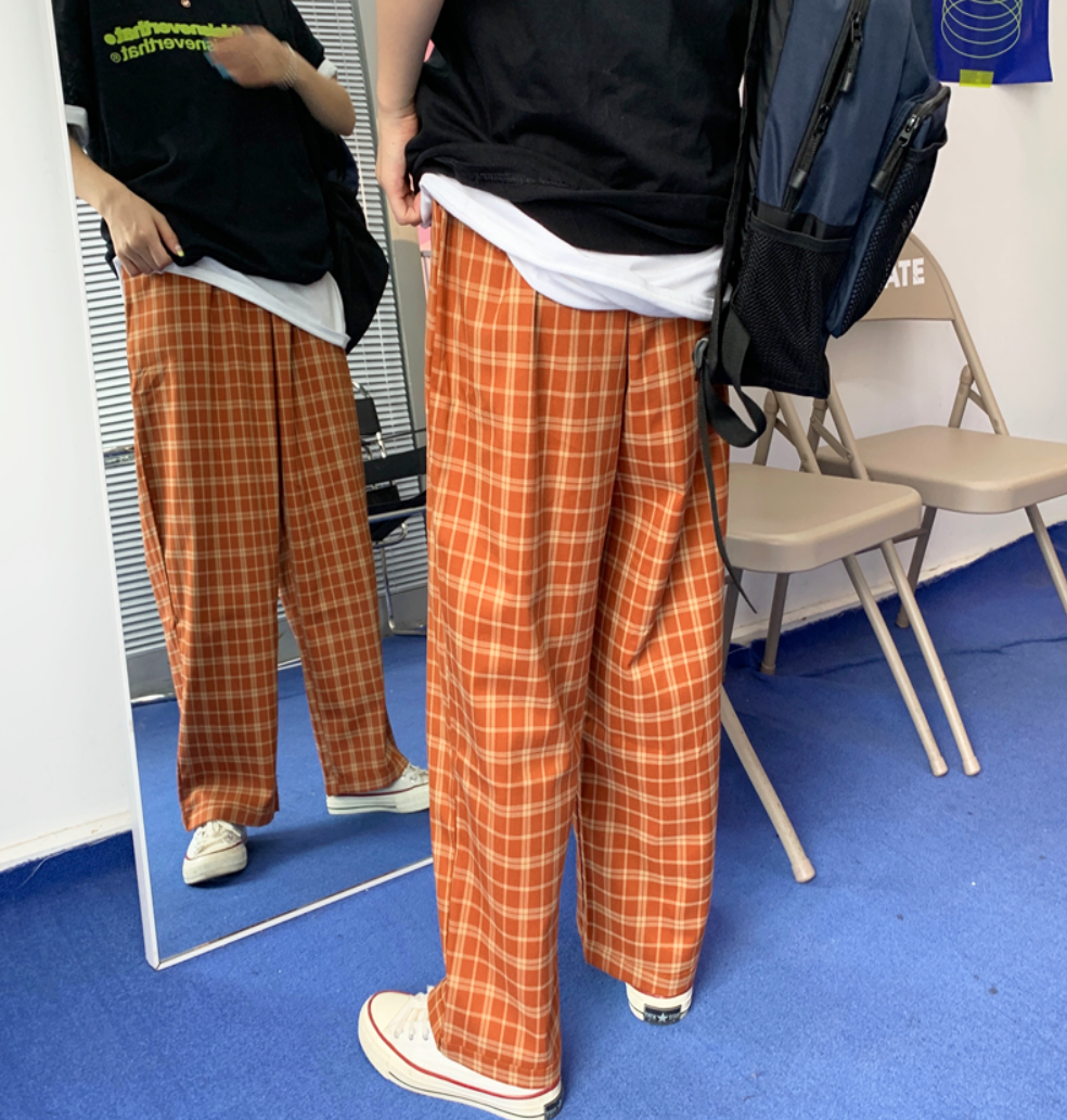 *Free Shipping"VINTAGE ORANGE CHECKERED PANTS