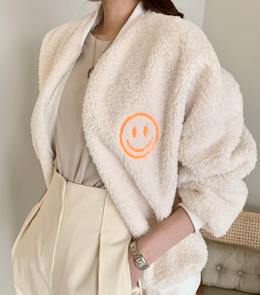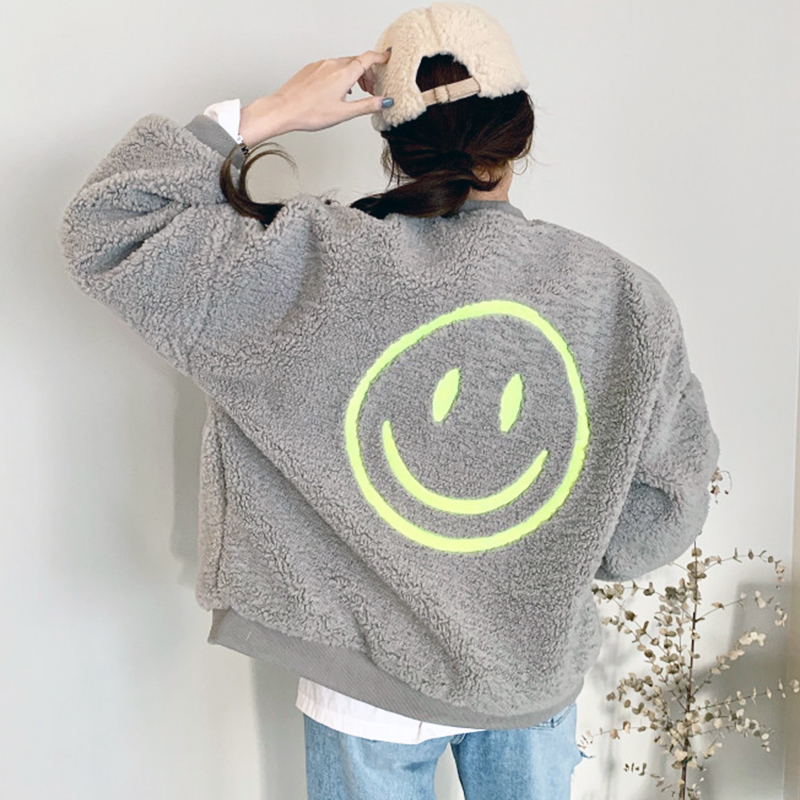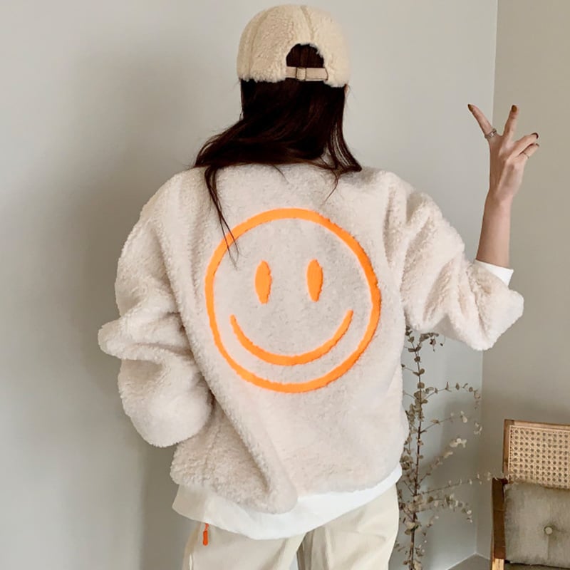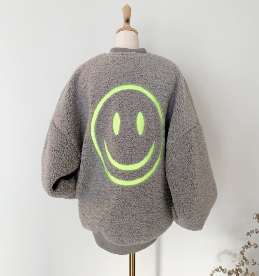 *Free Shipping*NEON SMILEY FACE FLEECE JACKET