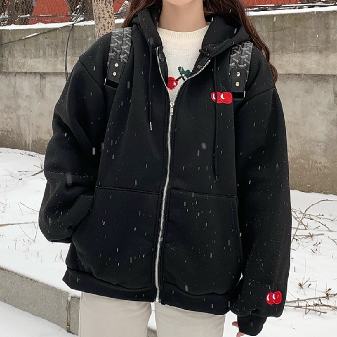 *Free Shipping*CHERRY HOODED JACKET