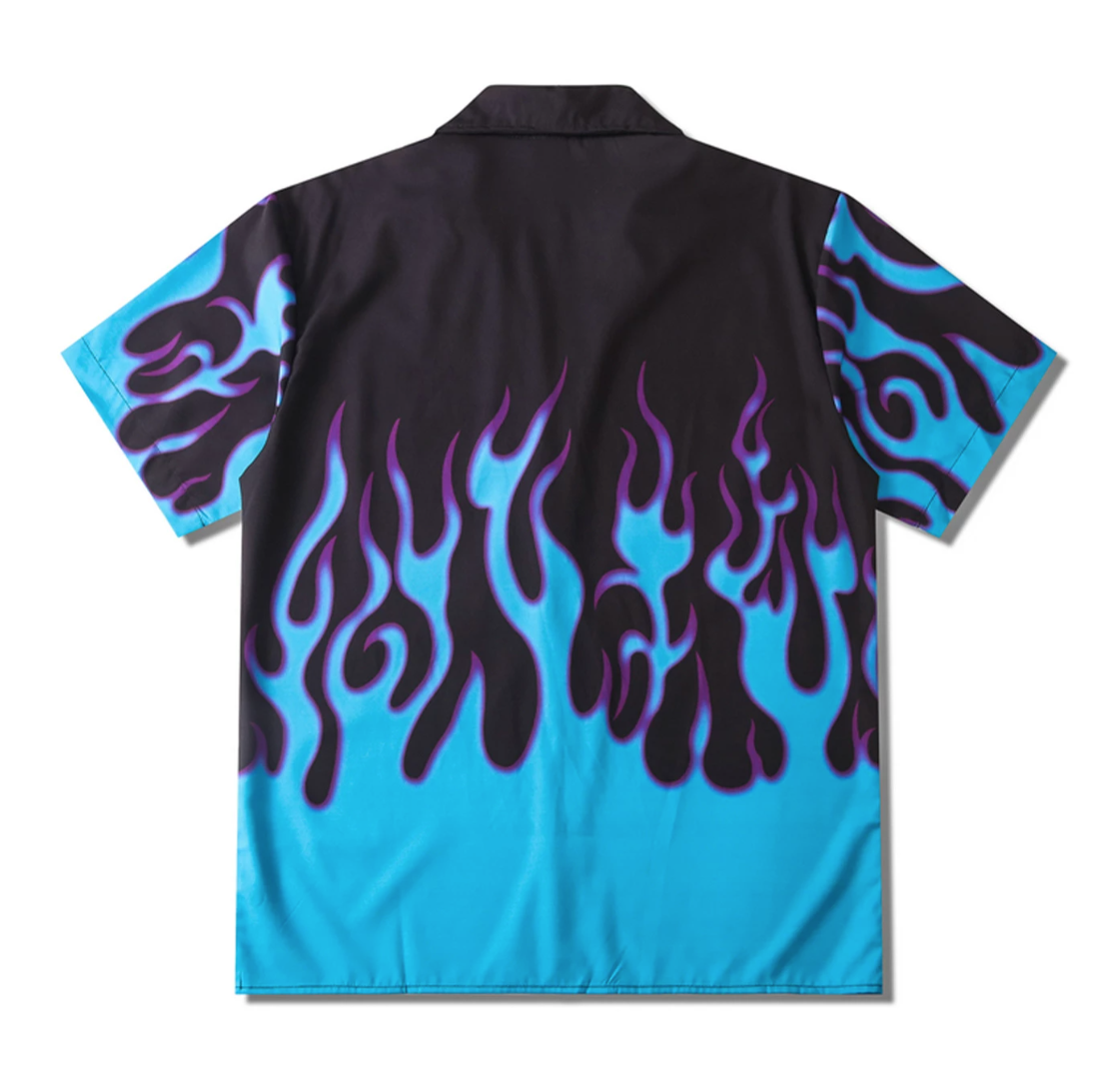 *Free Shipping*BLUE FLAME SHORT SLEEVE SHIRT