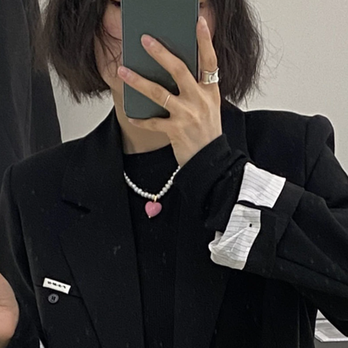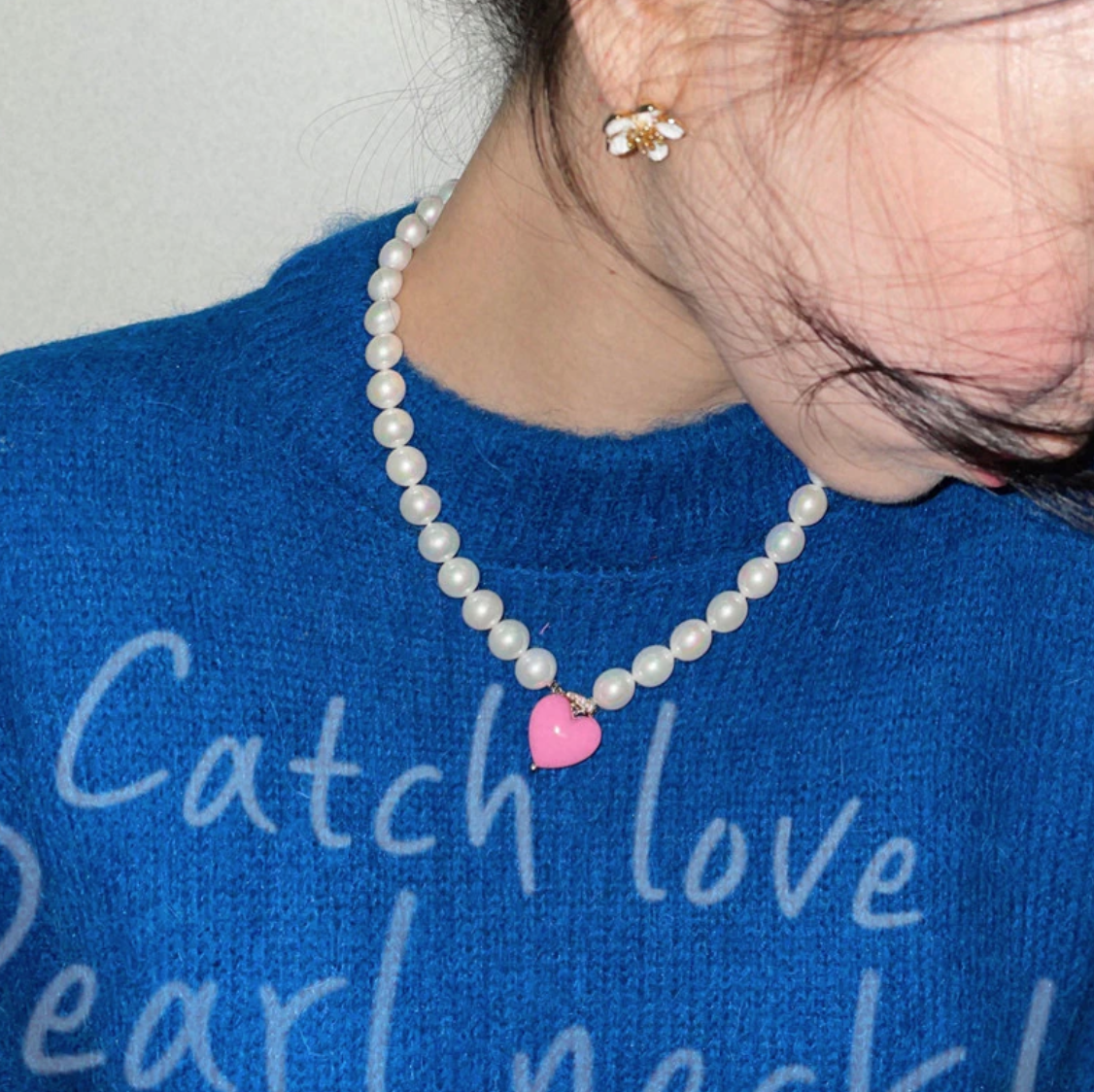 *Free Shipping*PINK HEART BEADED NECKLACE