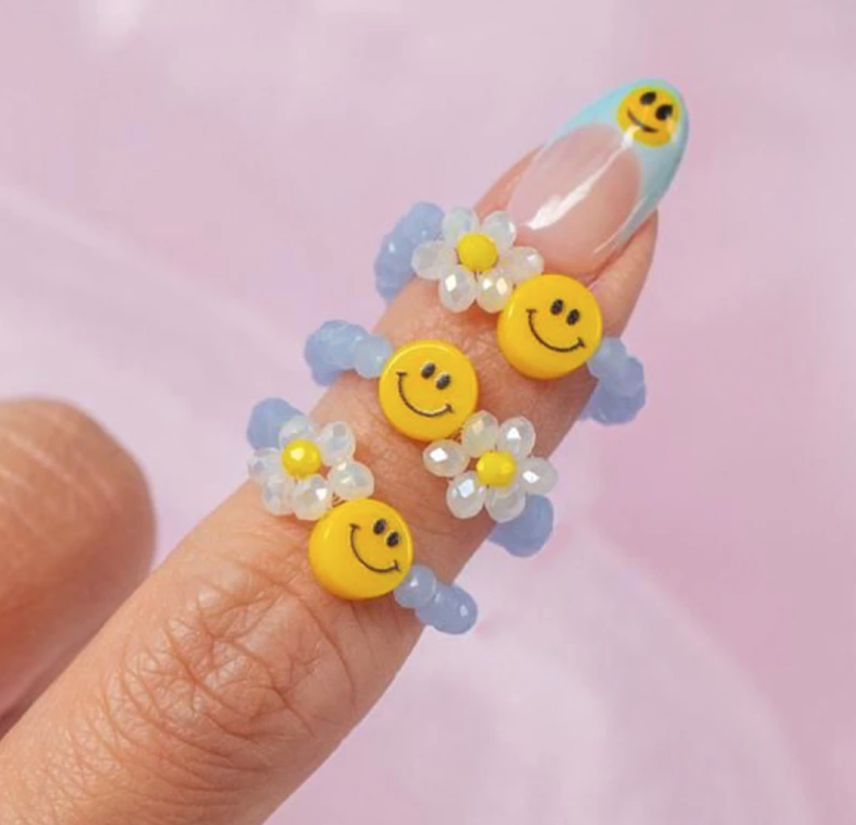 *Free Shipping*SMILEY FACE AND FLOWER BEADED RING