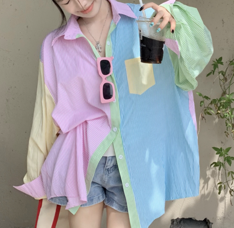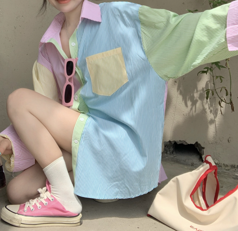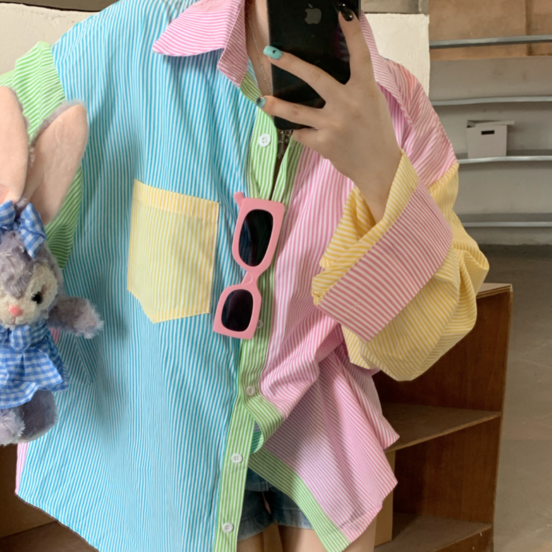 *Free Shipping*90s PASTEL STRIPED SHIRT