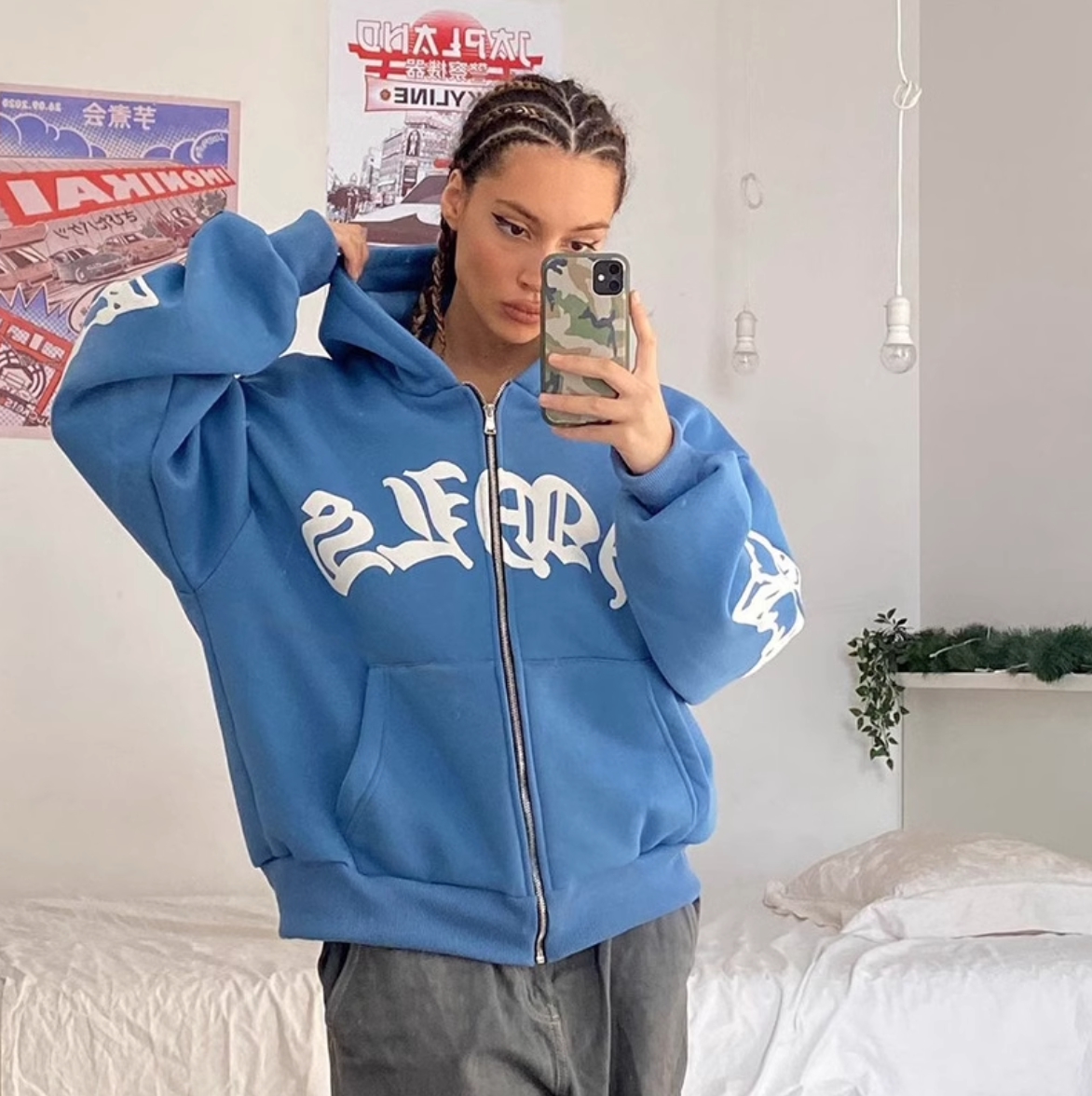 *Free Shipping*Y2K GOTH LETTER ZIP JACKET