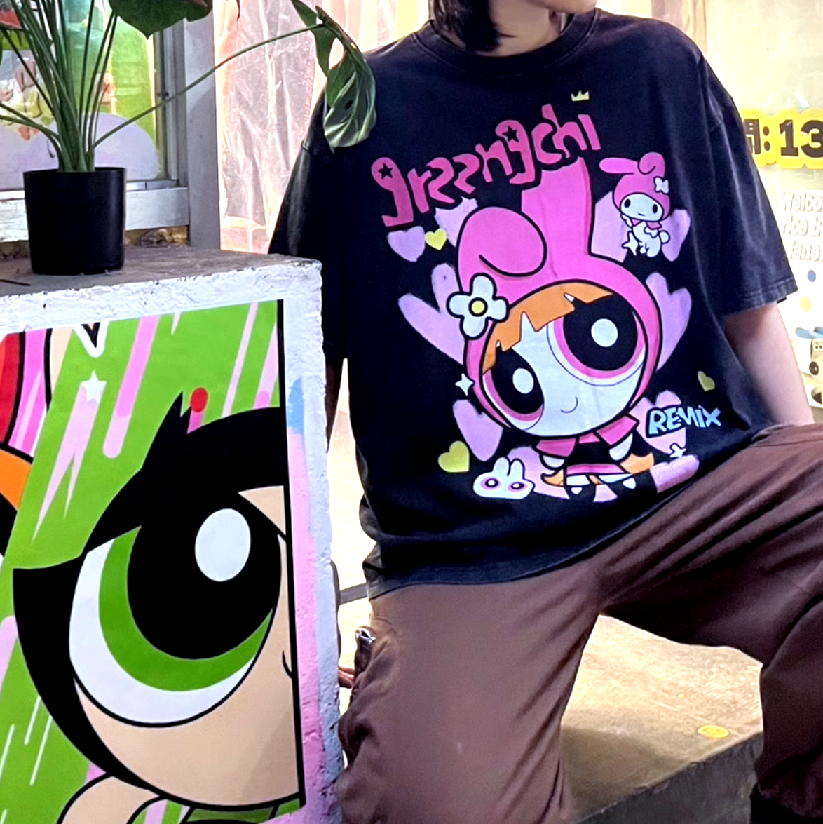 *Free Shipping*POWER PUFF GIRLS X MY MELODY TEE