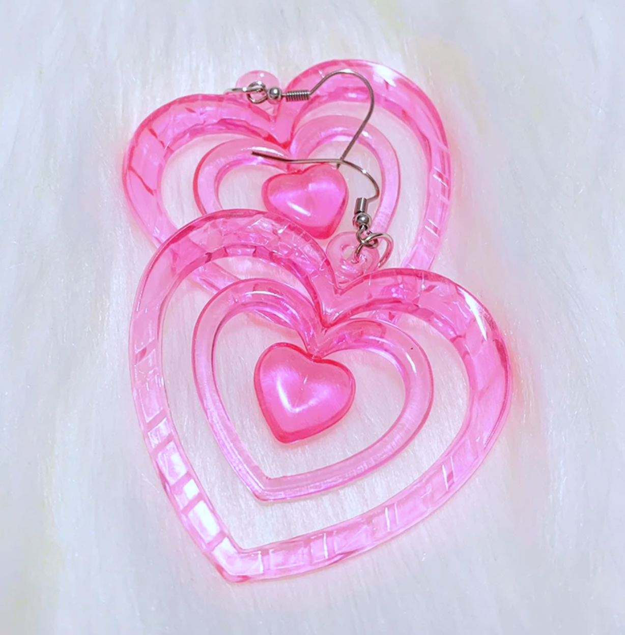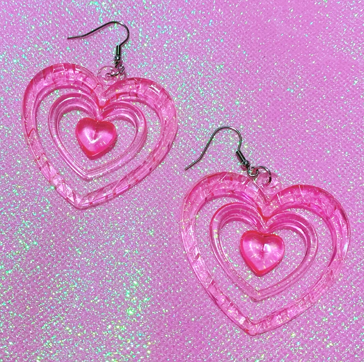 *Free Shipping*Y2K POWER PUFF HEART EARRINGS