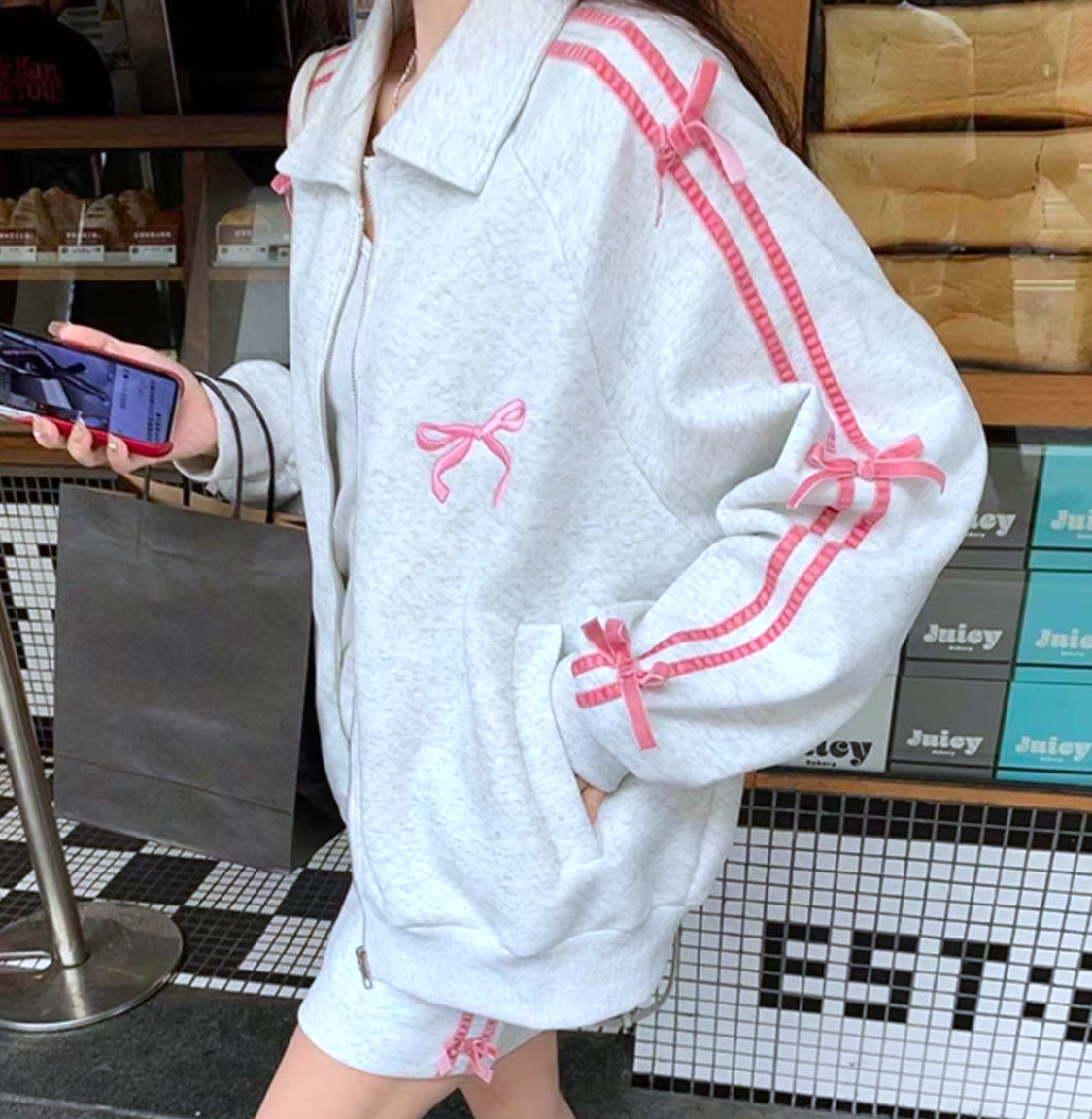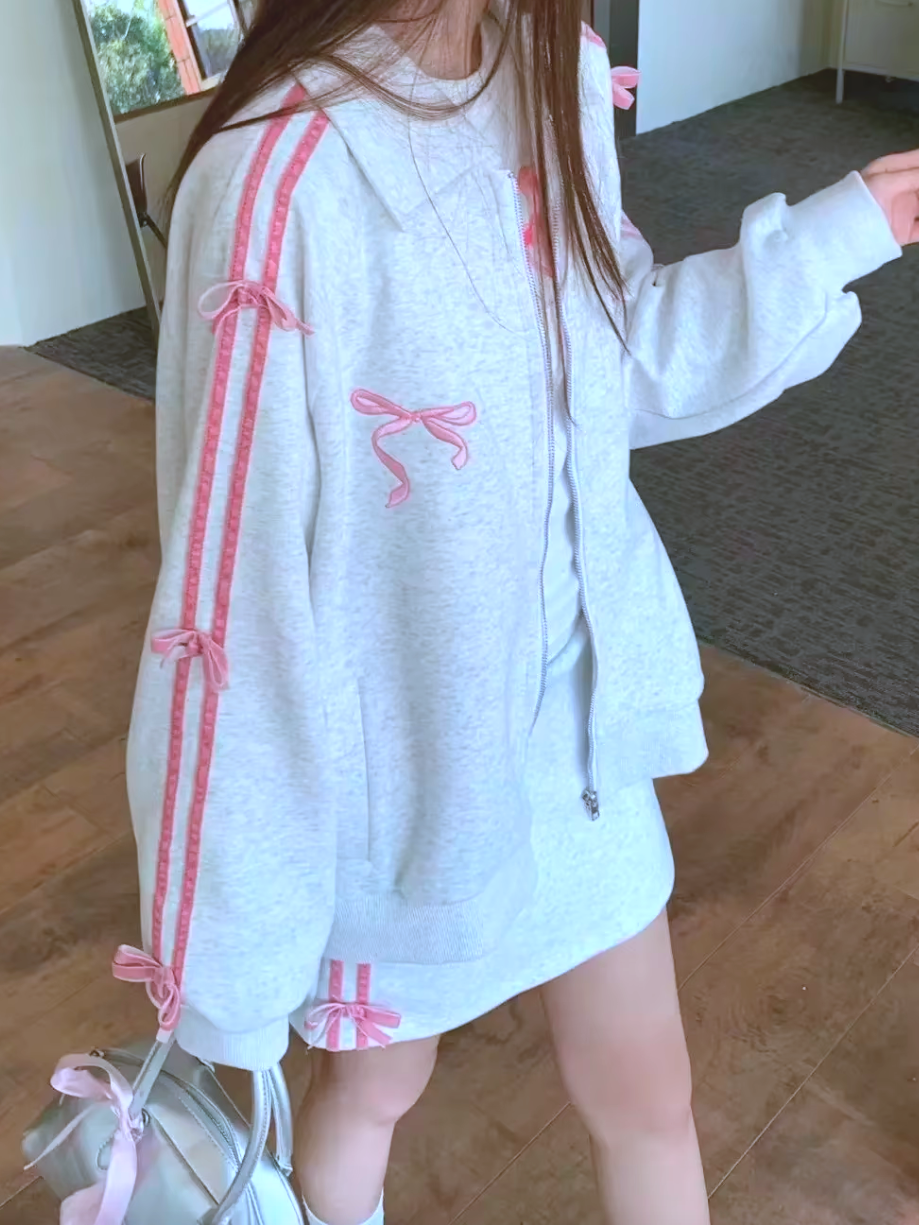 *Free Shipping*COQUETTE BOWS SIDE-STRIPE TRACK SUIT