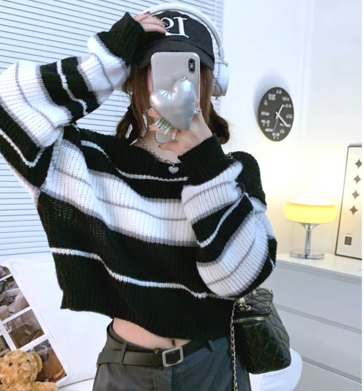 *Free Shipping*90s STRIPED KNIT CROPPED SWEATER