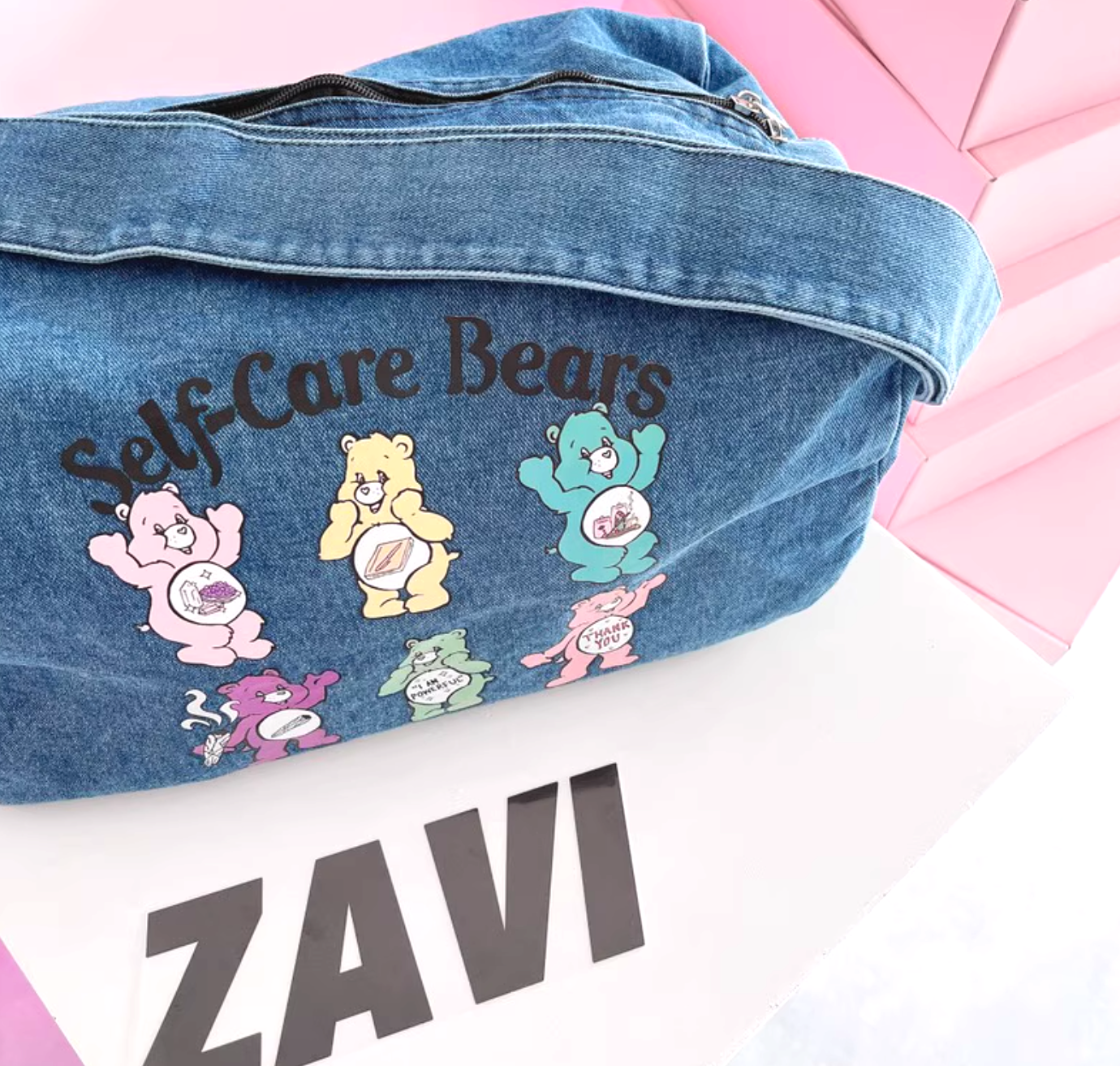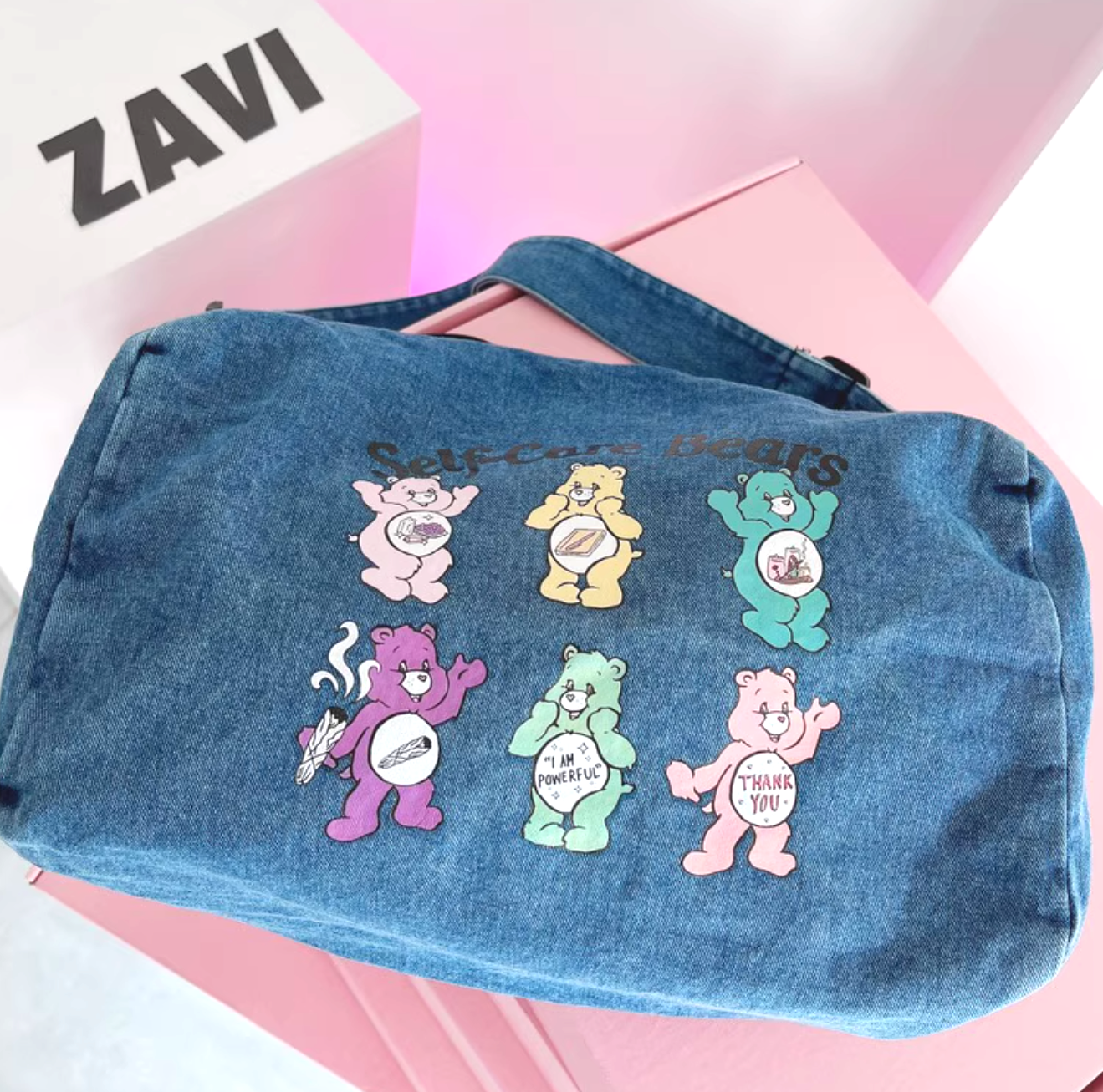 *Free Shipping*SELF CARE BEAR DENIM BLUE 2-WAY TOTE BAG