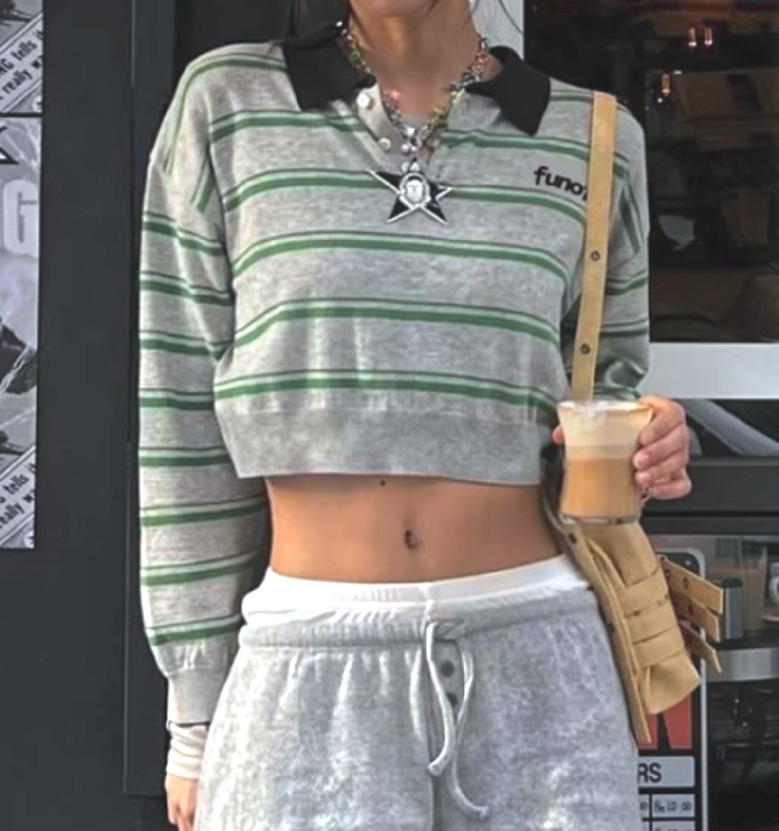 FunOff CROPPED LONG SLEEVE POLO SHIRT
