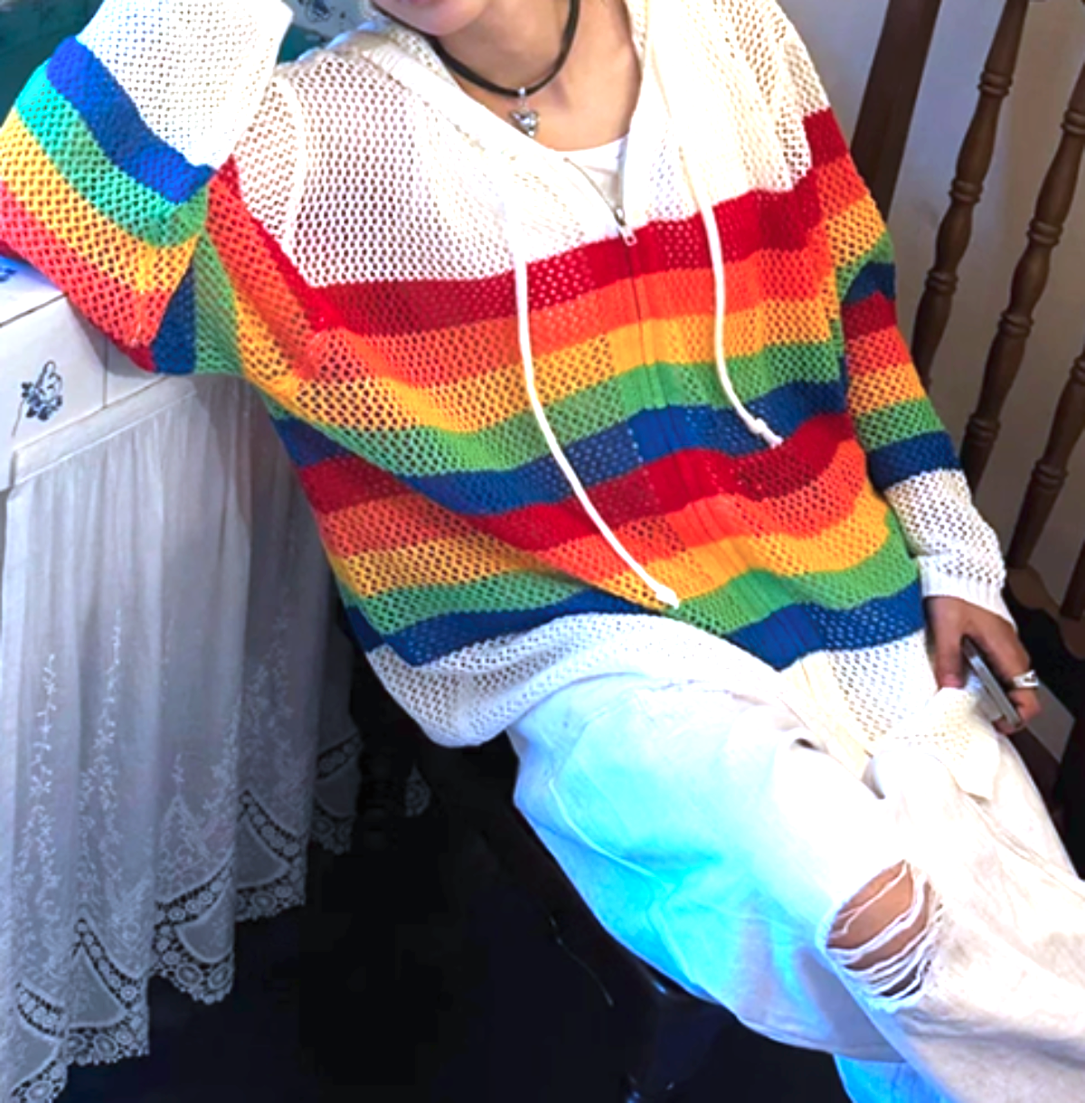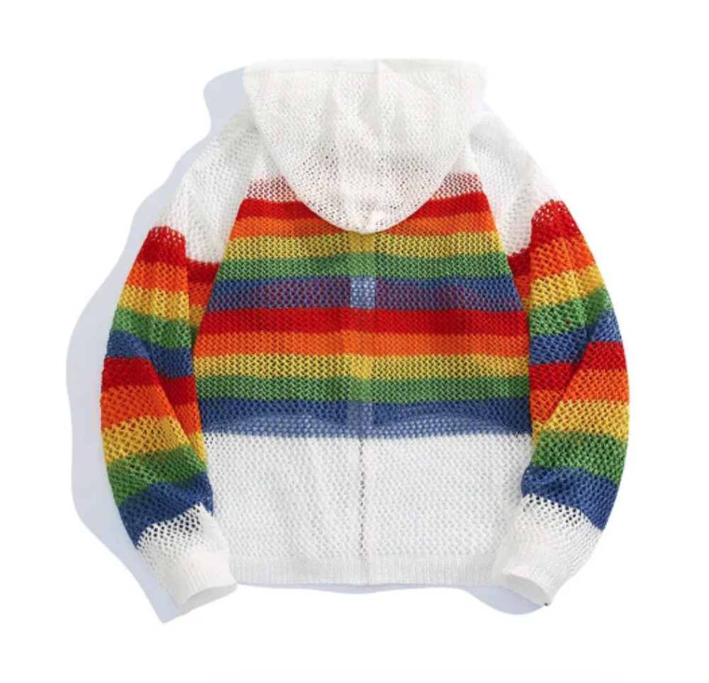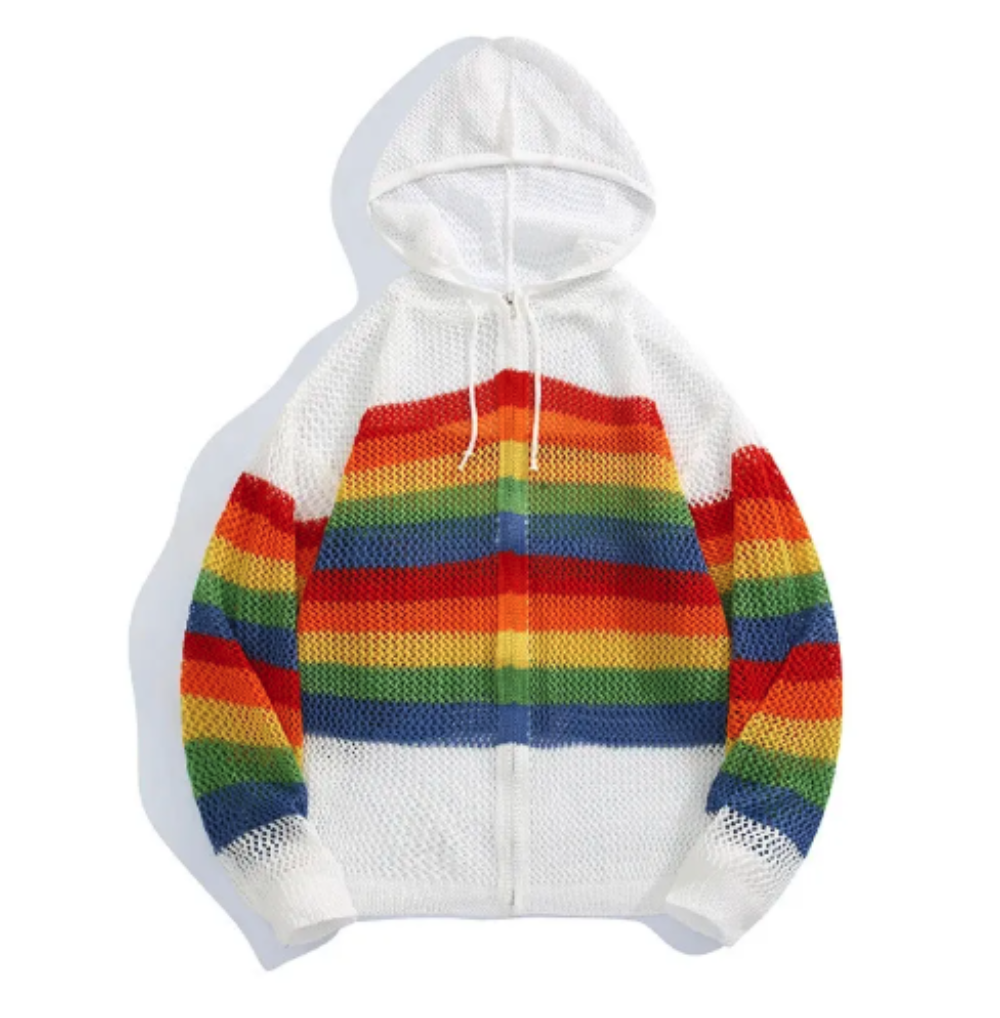RAINBOW STRIPE KNIT ZIP HOODIE