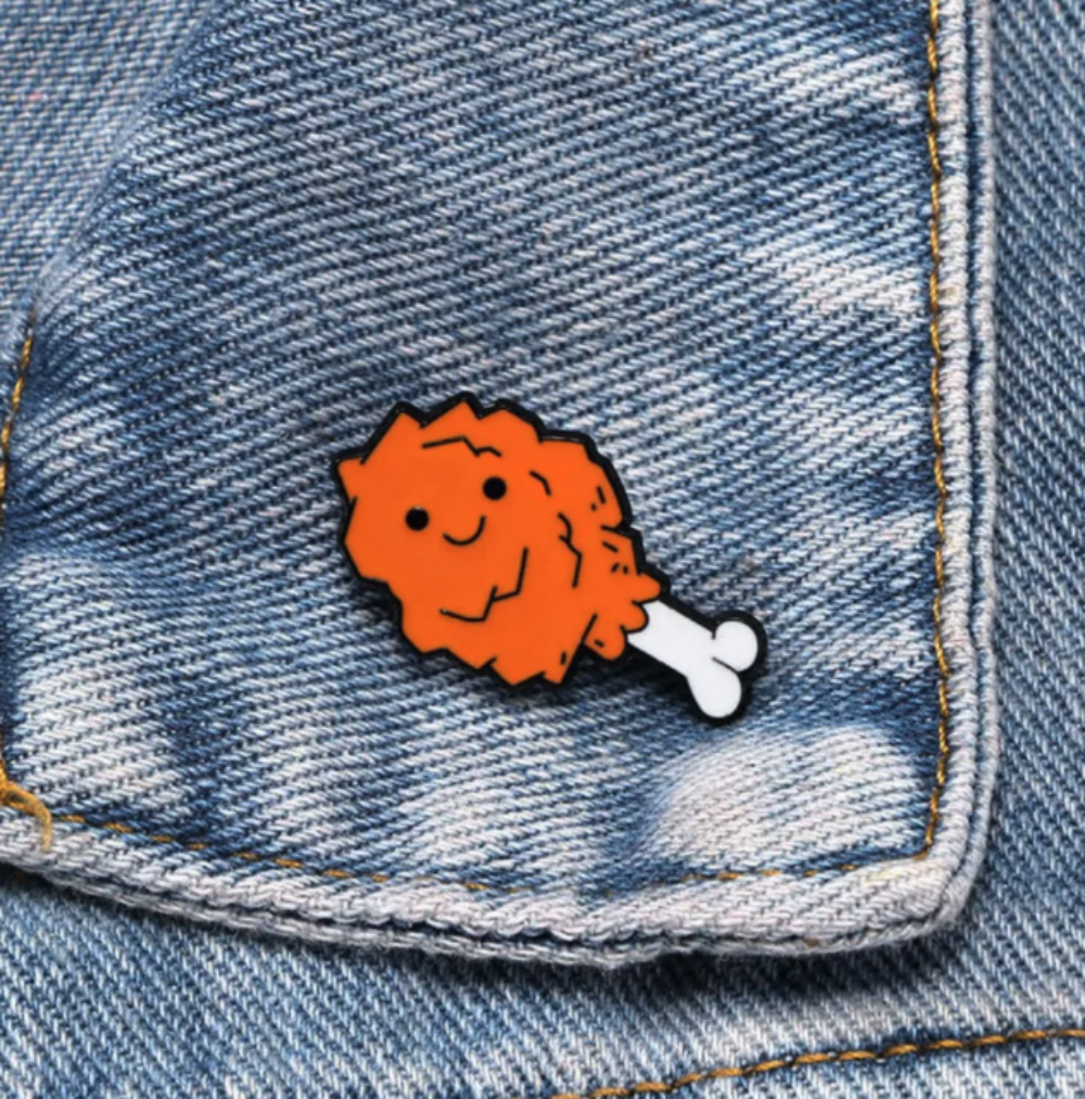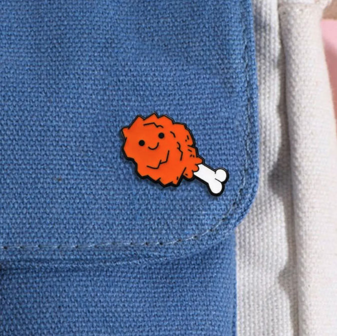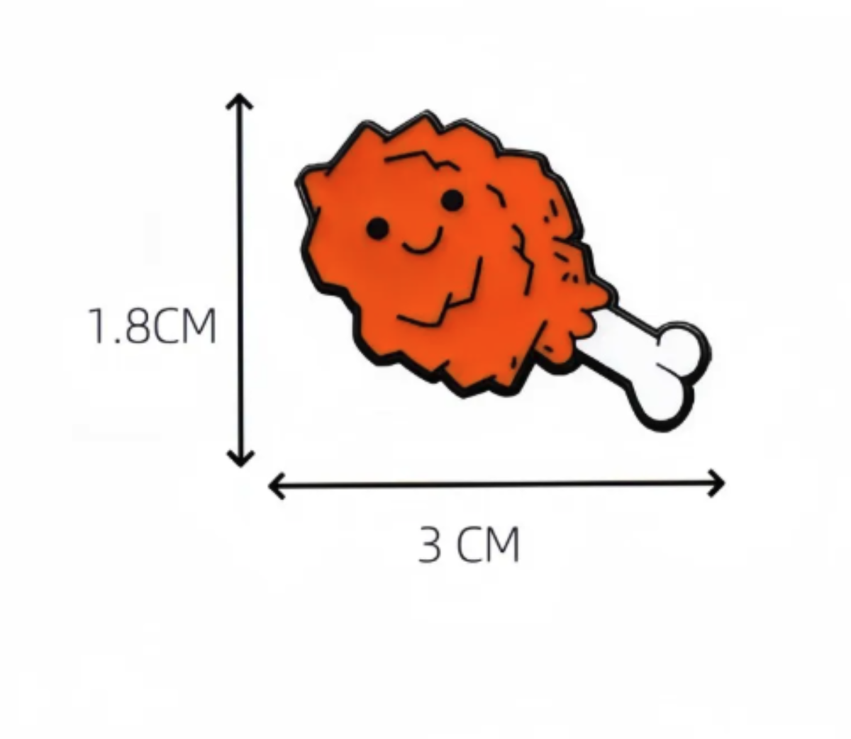 "Warning: This fried chicken pin is so cute, people will try to eat it. Wear at your own risk! 🍗✨" Material : Copper Size : 1.8*3 cm